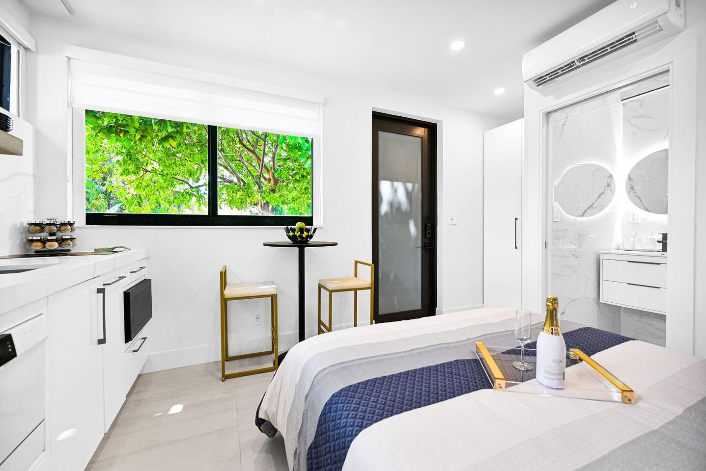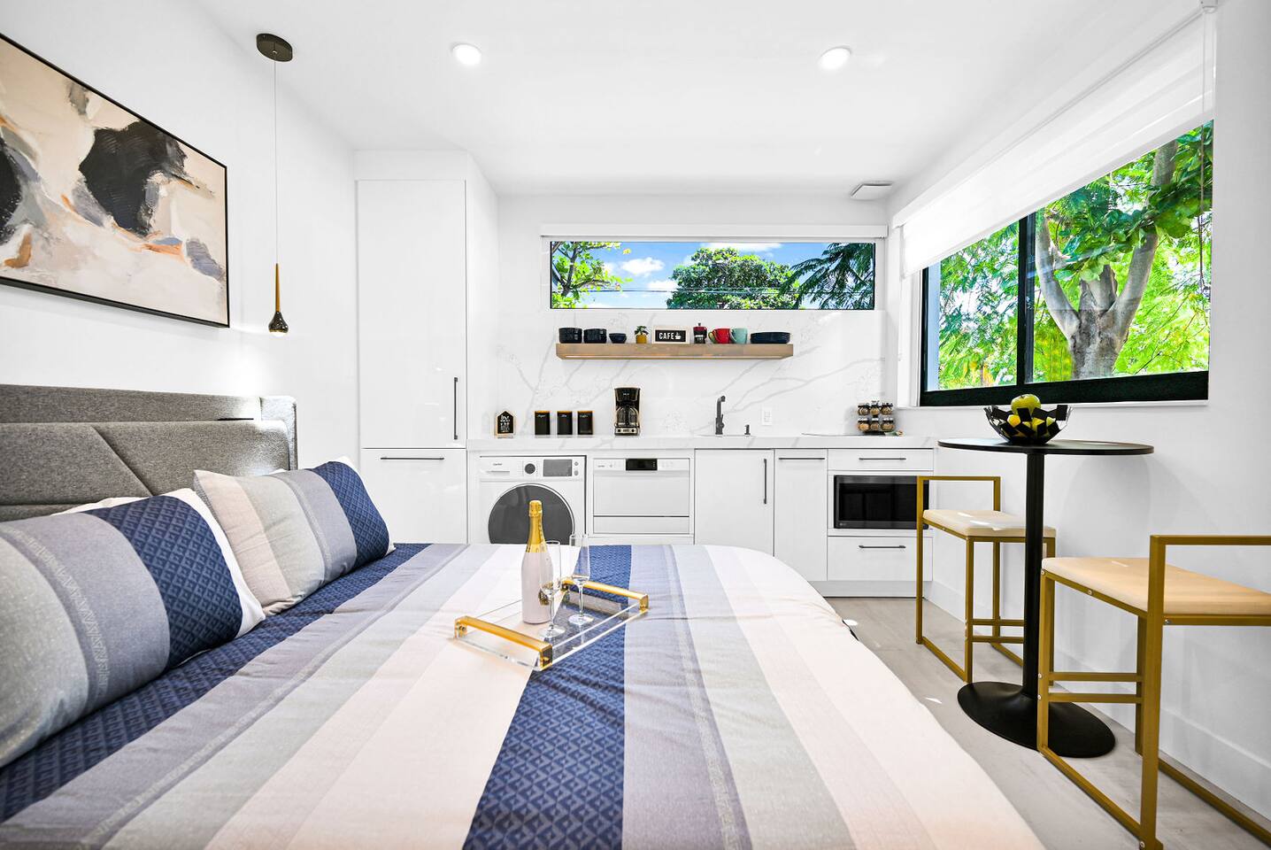 Bedroom Configuration: ➞ Bed Type: Cozy queen-size bed ➞ Sleeps: Accommodates 2 guests ➞ Bedding: Fresh, premium linens provided ➞ Comfort: Designed for restful nights Studio Apartment Highlights: ➞ Modern Bathroom: Bright and clean, stocked with towels, shampoo, conditioner, and shower gel. ➞ Private Garden Patio: Start your day with coffee amidst lush greenery or unwind in the evening under the stars. ➞ Fully Equipped Kitchen: Prepare meals with ease! The kitchen comes complete with essential cookware, pots, pans, and basic spices like salt and pepper. ➞ Free Street Parking: Hassle-free parking with a private entrance for added convenience. ➞ Fast WiFi: Perfect for remote work or streaming your favorite shows. ➞ TV Projector: Guests can enjoy a cinematic experience with our provided TV projector, perfect for streaming their favorite movies or shows in the comfort of the studio. ➞ Iron and Iron board: For your convenience, we’ve provided an iron and ironing board to keep your clothes fresh during your stay. Amenities for Comfort: ➞ Ensuite Washer & Dryer Combo: Pack light and refresh clothes as needed. ➞ Outdoor Furniture: Unwind in the garden with a book or enjoy alfresco dining. ➞ Safe & Peaceful Environment: This studio offers privacy, comfort, and tranquility. Nearby Attractions: ➞ Design District: Explore high-end shopping, art galleries, and trendy eateries just minutes away. ➞ Wynwood Walls: Discover colorful street art and vibrant murals in this iconic neighborhood. ➞ South Beach: Enjoy the sun, sand, and nightlife at one of Miami's most famous beaches. ➞ Brickell City Centre: A modern shopping and dining destination in the heart of the city. ➞ Vizcaya Museum and Gardens: A stunning historical estate with beautiful gardens and waterfront views. Guest Access: Check-in is at 4:00 pm, and check-out is at 11:00 am. ➞ Early check-in or late check-out may be available on request, subject to availability and an additional fee. ➞ Luggage drop-off is not allowed. Trash Disposal: To maintain a tidy environment, please dispose of trash in the designated blue and green bins located behind the unit. Whether you’re here for work or play, this charming studio is your gateway to Miami’s best attractions and experiences. Book now for a delightful stay in the heart of Miami!